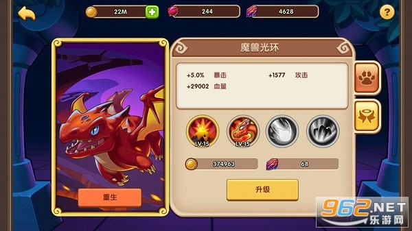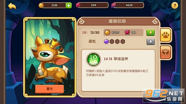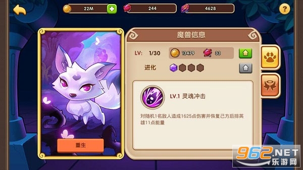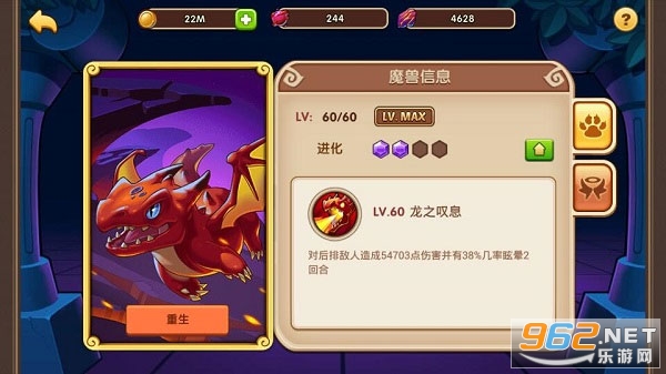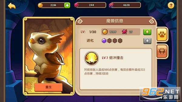 PS: 如果你发现自己培养错了魔兽也没关系哦,我们提供了重生功能,可以返还部分消耗材料,免除你的后顾之忧。