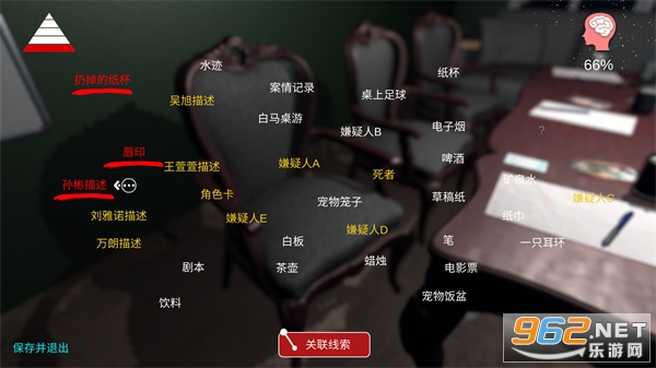 关联操作:将“王萱萱的陈述”与“耳环位置”“二楼争吵声”线索关联,形成时间线矛盾。