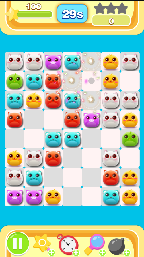 《天天十字消》是一款经典的消除类游戏。超可爱的画面,游戏中每个萌宠都萌点十足,表情各不相同,忍不住想每一个都捏一下。游戏很考验玩家的眼力,玩家需从这些可爱的萌宠中立刻找到相同的消除后来赚取分数,只有分数达到才能顺利闯过关卡,每关时间的限制提升了玩家的紧张感,及时运用拥有的道具才能快速。