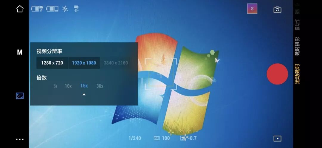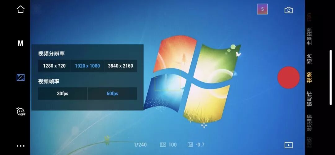 左侧的参数设置和拍照模式基本一致,除了把延迟拍摄改成了调节视频的分辨率和帧数。也可以开启美颜功能。