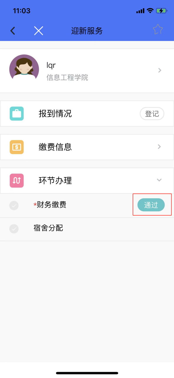 (2) 辅导员扫描二维码分配班级、 宿舍。至此,新生报到完成。