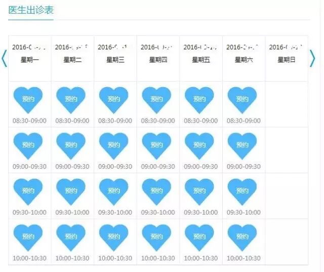 根据医生的出诊时间,选择蓝色可选的预约,网上预约就完成了!