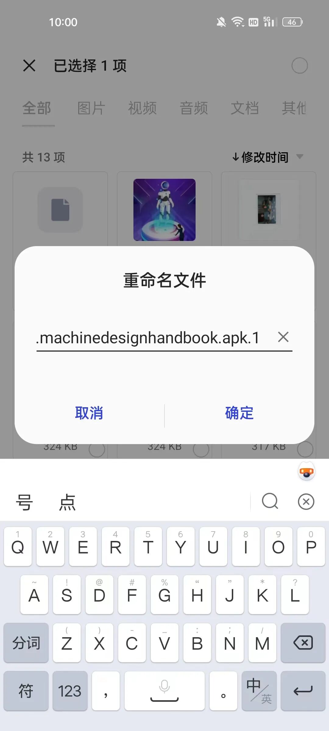1.可在电脑上下载好安装包,然后将安装包发送到手机上。注意:如果发现安装包有如下图所示的后缀,则需要重命名,去掉后缀“.1”,然后点击进行安装。