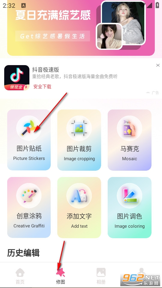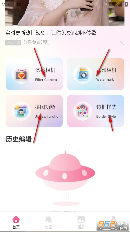 我们也能够点击下方的修图,选择将自己拍摄过的图片进行美化。