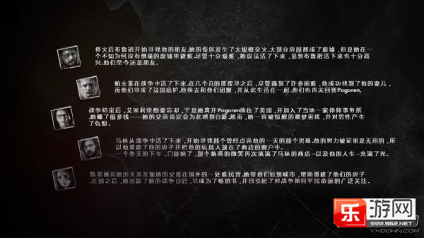 [乐游网导读]这是我的战争是一部非常经典的求生类单机游戏,游戏的剧情跌宕起伏,角色的转换非常居于创意,在战争中艰难的存活下来。