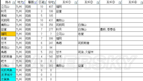 (PS2.游戏中有五个国根据剧本不同本城有变化,备前、尾张、北信浓、甲斐、武藏,这5个国被本城互斥受剧本影响,我整理的互斥是全剧本里都是互斥...)