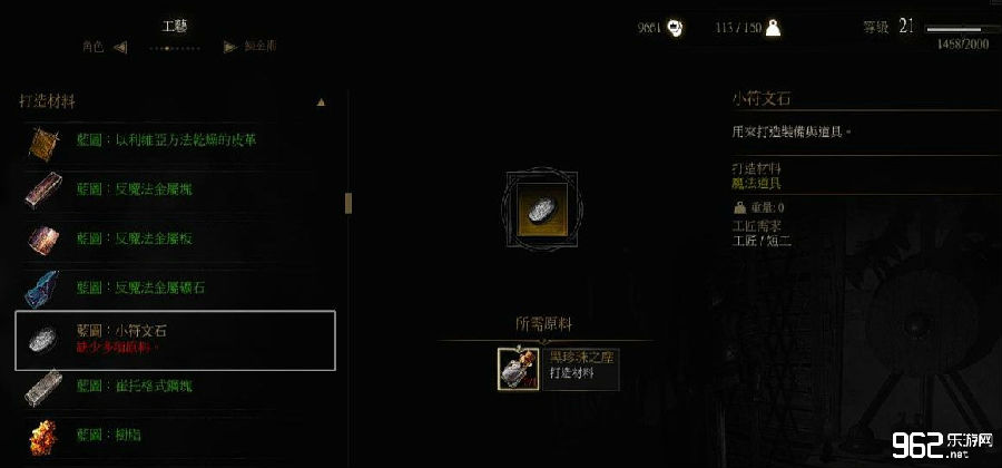 打造项在锻造材料子项,跟符文石成品不在一个类别里,往下拉