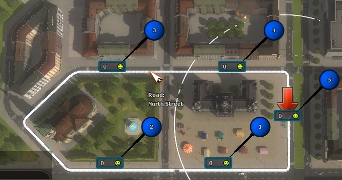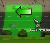 在马路上会出现绿色区域,箭头表示建造在马路的那一侧