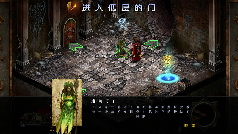 进行往西部前进,会遇到一个哥布林巫师。把他带回上一层兽人地域就完成任务了。他会教你额外的学习魔法