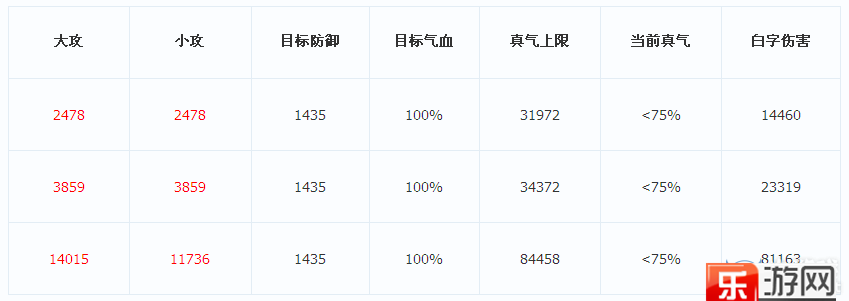 这两组数据前面条件都相同,只有当前真气量不一样,第一条和第二条不一样的地方就是是否触发真气贯穿的效果,从数据上就能看出触发条件后的白字伤害要高。