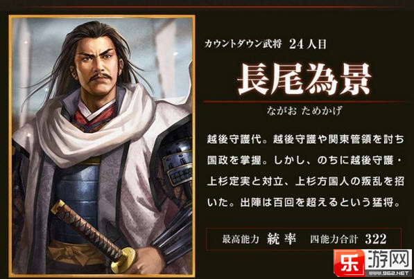 距离统一天下的大决战还有6天,今天公开的武将是越后国的战国大名上杉谦信之父长尾为景。