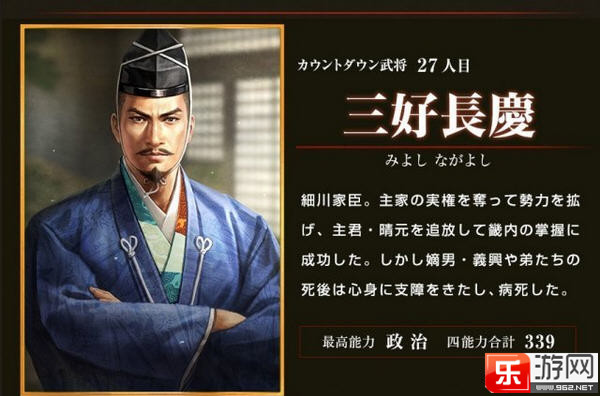 [乐游网导读]距离《信长之野望14:创造加强版》发布还有3天时间,而游戏中的绝大部分武将都已经发布完了。今天小编要为大家带来的是新武将大野心家三好长庆。那么下面我们一起来看看三好长庆的介绍吧。