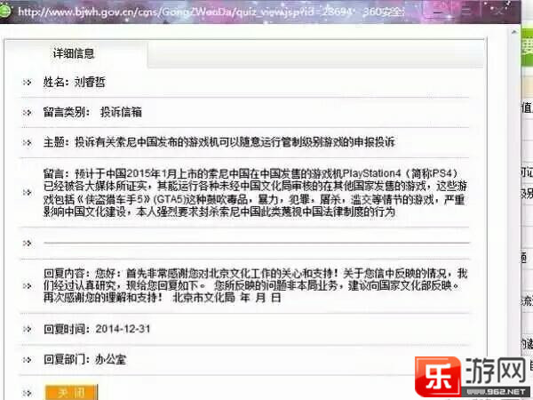 各位说PS4过审是政府同意的,所以举报是一点用没有的,那么于情于理,我这个举报是一点用处都没有的,我也早就说了,我根本不想让PS4锁,我只希望x1解锁。举报只是为了搞清楚政府到底怎么想。大概你们不知道文化部上个月刚刚落马,12月30号上台了个新的吧