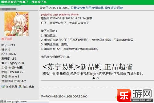[乐游网导读]相信不少国内还沉浸在国行PS4不锁区的欢乐当中,毕竟从提前偷跑的国行版玩家曝照中我们惊喜的发现国行可以运行《FIFA 15》、《侠盗飞车5》这样的游戏。然而现在大逆转了!今日“舅舅党”Kosmos凌晨爆料称“不敢说基本确定锁区,但基本上差不多会锁了。”他谈到,因为遭到举报,索尼对于国行PS4或将执行锁区。