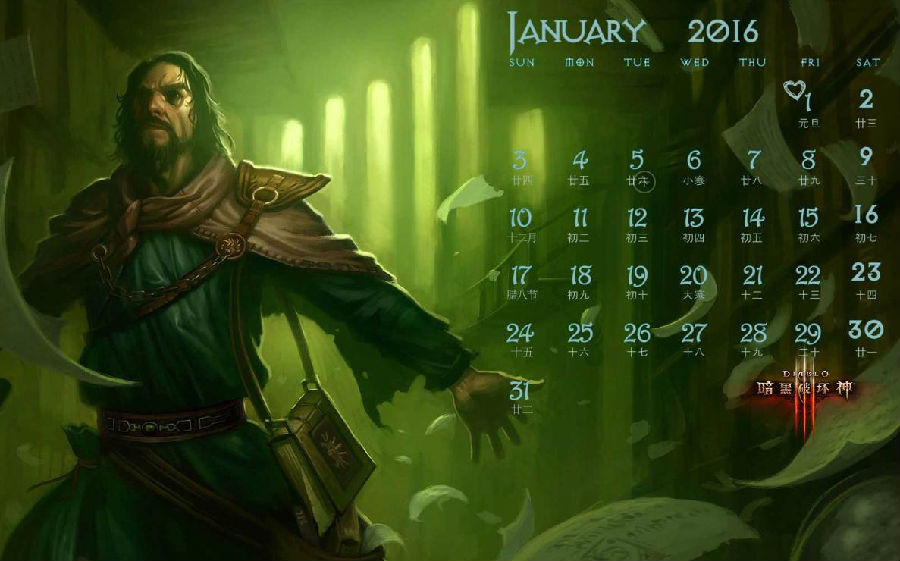 [乐游网导读]新的一年到了,对于喜爱《暗黑破坏神3(Diablo III)》的玩家而言,拥有一款《暗黑3》的月历是不是会让你在新的一年在游戏中更有斗志呢,现在凯恩之角的一位名叫fisher#1235的小伙伴就制作了《暗黑3》月历,喜欢的朋友可以看看。