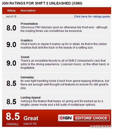 一年一度的赛车游戏大餐,《极品飞车15》在今年提前到来了,似乎总感觉还轮不到它出场。昨日IGN给出该作的评分,总分达8.5,虽然这个分数在游戏界里已经算是个不错的分数了,但与自身前作对比,极品飞车13与14均取得了9.0的高分,如果与自身对比的话,这反而是退步了。具体哪些环节造成了影响呢?大家可以看一下各项点评内容:
