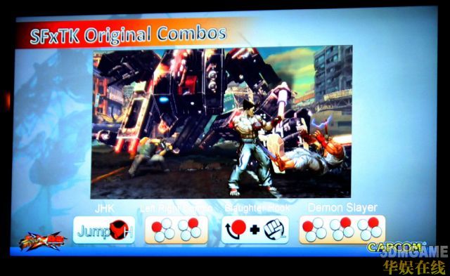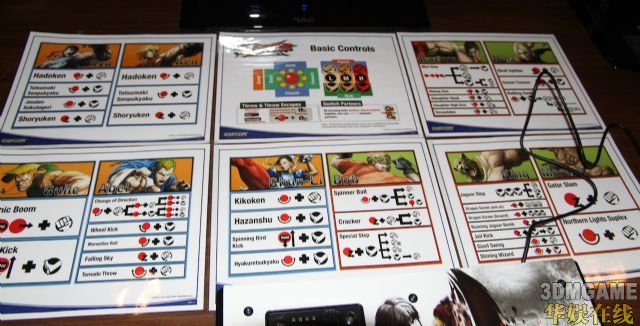 街霸的角色操作和之前作品别无两样,高手还是用你们的专用摇杆吧。手柄操作自然是摇杆加6按钮。那铁拳角色呢?由于是Capcom负责,所以操作方式还是和街霸系列一样。小野还透露,系列四键连击系统对于铁拳角色同样适用。在我们 采访小野的时候我们拍了一张一些角色的四键连击出招表,很明显这张表很不完整。