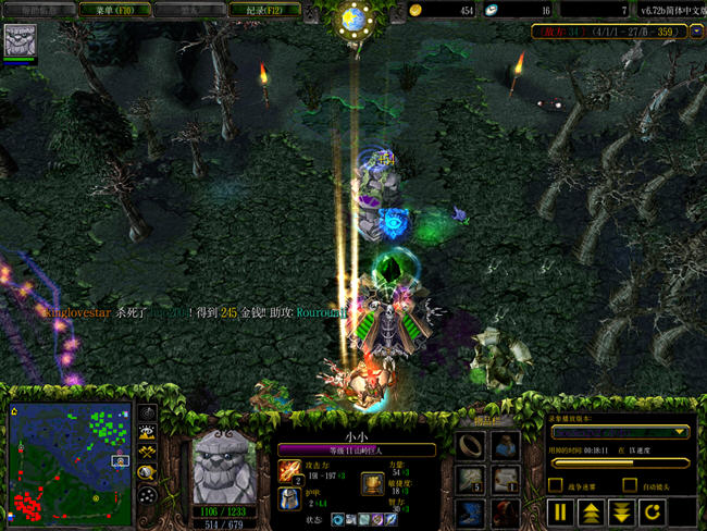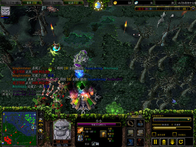 中间,小小的眩晕时间已经过了,时间是16分28秒,同时中了幻影刺客的一个1技能,身上带减速BUFF效果,我们看到还在