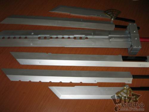 这把令人震撼的巨剑历时160小时完成,作者先在电脑中设计出如何将6把剑合一的草图,然后再用铝板逐一打造。为了减轻剑的重量,让自己能够真正的举起这把巨剑,大剑部分作者采用3层胶合板制作而成,其他部分材料均为铝合金板,并且进行了精确的切边和抛光,让巨剑不仅看起来逼真,而且结构完整而结实。下面还是随小编一起来看一下这把巨剑的完整拆解吧!