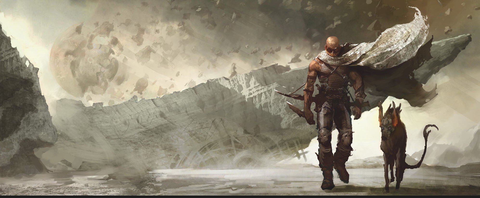 [乐游网导读]据悉,日前 文·迪塞尔(Vin Diesel)在自己的Facebook里公布了一张新的《星际传奇3(The Chronicles of Riddick 3)》概念艺术设计图,画面上是瑞迪克和他的新宠物 -- 一种像狗的外星生物,之前曾有一张概念艺术图里也出现过。