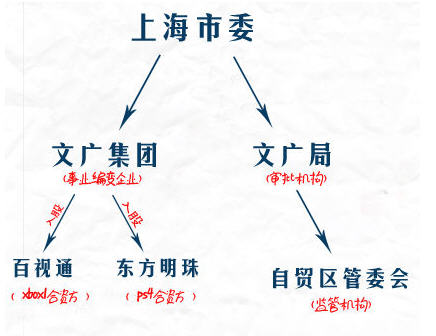 根据资料显示,为配合自贸区的推进,上海市委亲手推动了文广系统的一系列改革,将原为事业单位的文广集团转型成为国有独资有限公司。而之后对百视通和东方明珠或间接或直接的股份持有,更是能透视出Xbox One与PS4的入华推手,正是上海文广集团。