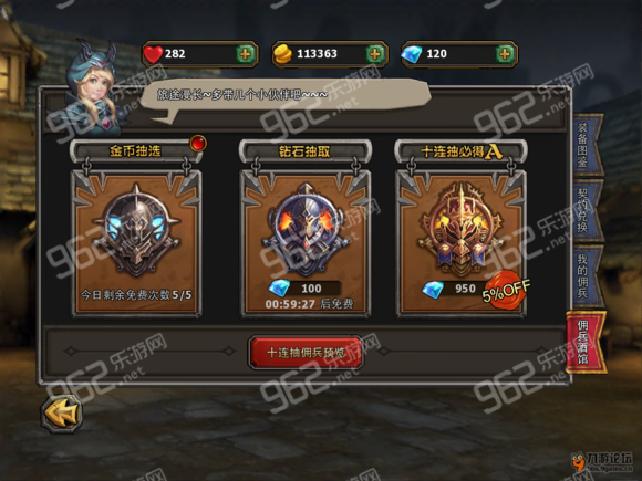 4 强大的佣兵旅途漫漫。伟大的英雄,怎能没有追随者呢。去酒馆吧抽取强力的佣兵吧,有了史诗佣兵协助,战力更会产生翻天覆地的变化。