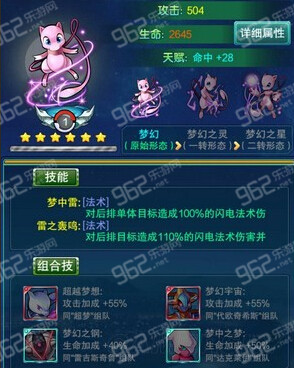 两个加攻击的组合技都激活的话能够打到110%的攻击力加成,伤害不俗了,七星的两个一个比一个肉,雷吉斯奇鲁更有反弹王的美名,想想,如果你五星合成六星一转的话,出来了梦幻之灵和恶梦使的话,那恭喜你,你完全可以不着急合成七星一转了,只要小小转型就可能大幅提升战力,梦幻之灵是可复活的小强,恶梦使有30%攻击buff,完成取代酱油的妙娃草,再配合上小 伙 伴的组合技能,压倒性的优势不可轻视!