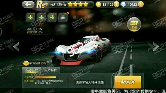 天天飞车RS级光电游侠属性技能: