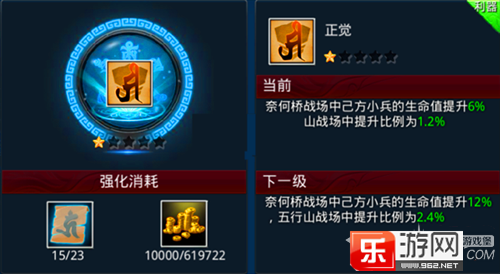 奈何桥战场中已方小兵的生命值提升6%,五行山战场中提升比例为1.2%。下一级,奈何桥战场中已方小兵的生命值提升12%,五行山战场中提升比例为2.4%。