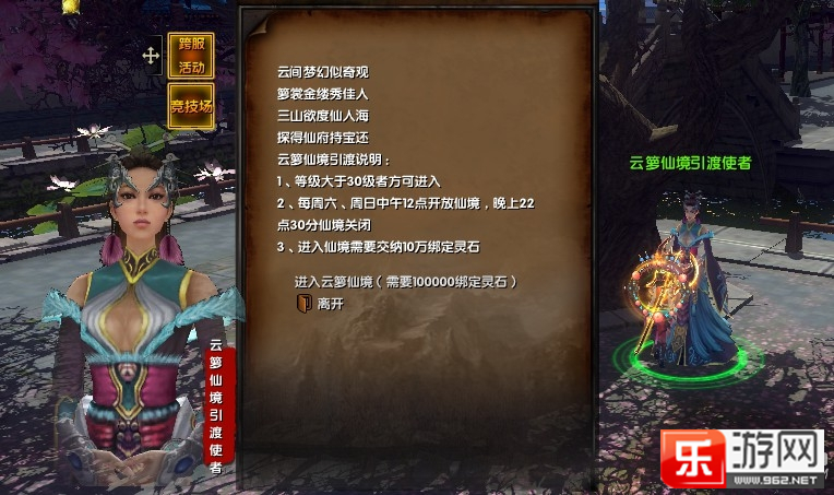 3.该活动需要进入云萝仙境方可参与,可通过太昊城云罗仙境接引使者(1058,815)进入云萝仙境。