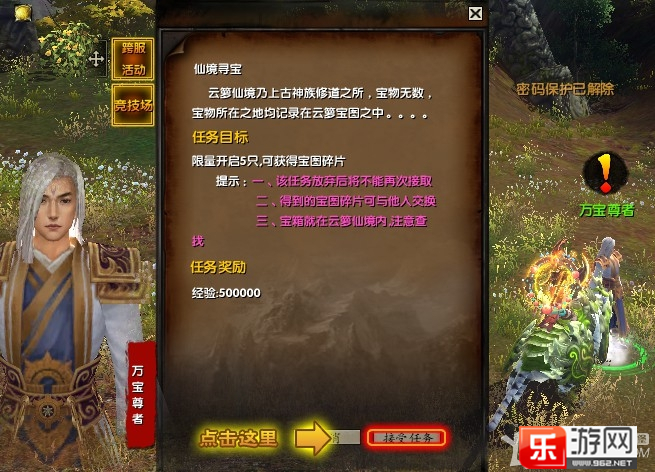 5.所获宝图碎片可合成出宝图,可在仙境内进行寻宝。