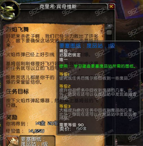 要获得要塞废品站的图纸,首先需要你到达96级,然后前往阿兰卡峰林做地精的分支任务,做下去就能够得到废品站的图纸啦!