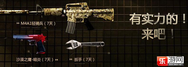 [乐游网导读]CF2014年12月份精英军火库最新活动开启了,玩家在活动期间可以获得M4A1轻骑兵、沙漠之鹰以及暗淡扳手等豪华大礼。
