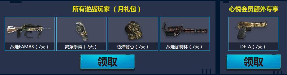 以专区上线时间为起,在充值逆战游戏点券,并成为心悦会员,即可获得奖励,每个QQ只可领取1次(计算所有充值渠道)