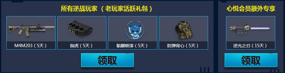 角色创建时间在10月30日前且每日登录游戏完成3次对局可以领取老用户活跃领礼,心悦用户可额外领取专属奖励,活跃奖励每日限量发放,先到先得,心悦用户关注心悦微信公众帐号后可额外领取心悦专属礼包。