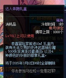 [乐游网导读]dnf体验服更新之后,很多玩家都感到非常兴奋,其中签到奔跑礼盒进行了一次改版,对于很多玩家来说可能不是很适应。