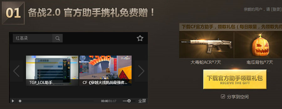 2、下载CF官方助手,即可免费领取备战礼包(每日限量,先到先得!今日未领取,可第二日继续领取!)