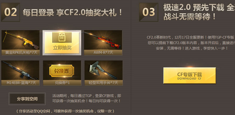 3、每日通过TGP登录CF游戏,即可参与一次抽奖,限当日使用;