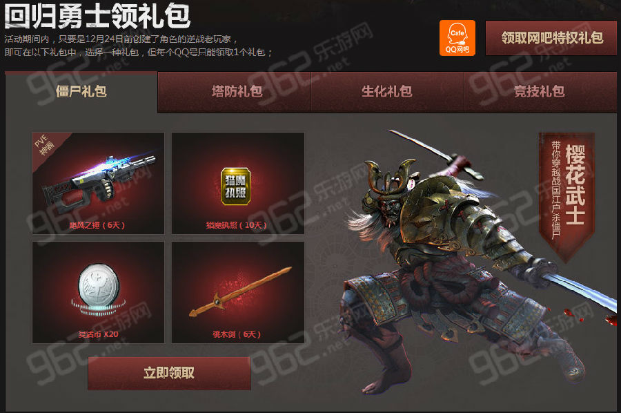 [乐游网导读]今天逆战更新了新的年度版本樱花武士,玩家可以领取到非常丰厚的福利,当然QQ网吧的玩家同时也可以拿到回归福利,下面是活动内容及地址分享。