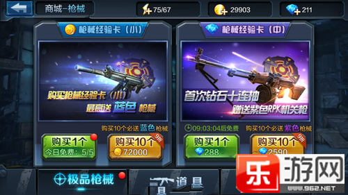 在商城中武器的获得有两种方式,第一种就是钻石、金币购买。如果玩家有足够的钻石,个人还是比较建议购买的,毕竟可以节约很多成本。