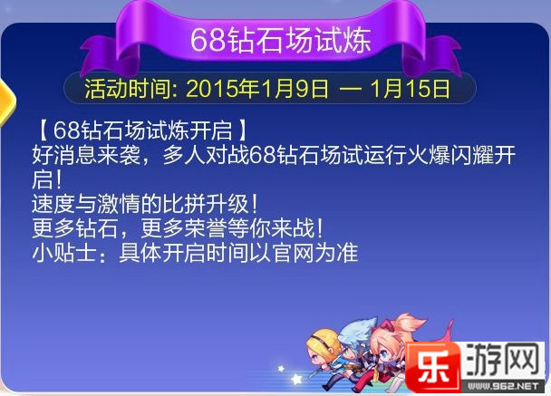 天天酷跑最新版本更新之后,玩家都对全新的任务模式感到好奇与期待,在1月9日开启的68钻石场试炼活动更加增加了火爆的氛围,下面给大家详细介绍天天酷跑68钻石场试炼活动内容。