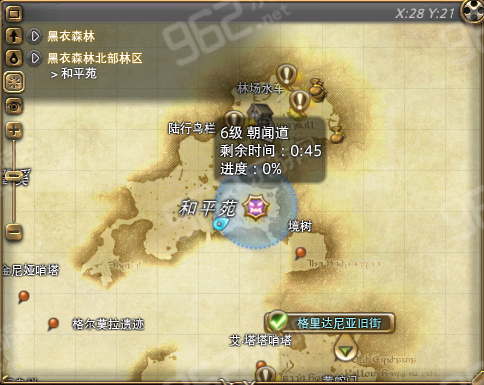 黑衣森林中央林区“弯枝牧场”的东南方向、黑衣森林北部林区“林场水车”的南边、中萨纳兰“乌尔达哈调车库”的东南方向。
