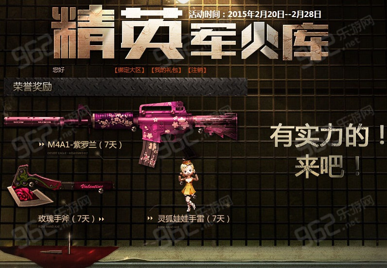 [乐游网导读]最近CF放出了新的精英军火库,不过活动从2月20日开始,持续到2月28日,下面是2月精英军火库网址及奖励介绍,大家可以了解一下。