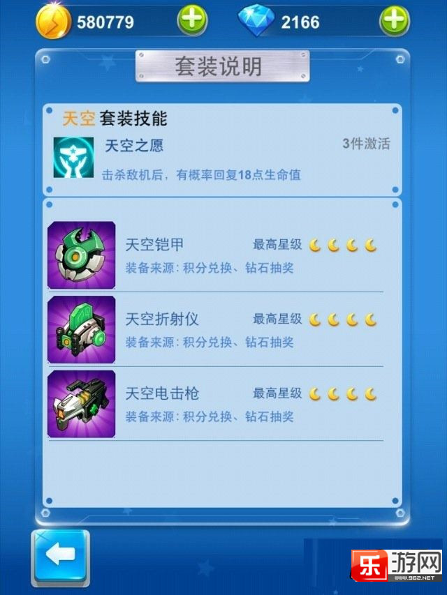 [乐游网导读]全民飞机大战天空套装是今日正式上架与玩家们见面的,相信玩家们对这个新的套装非常期待,下面就是小编为大家带来的天空套装的详细介绍!
