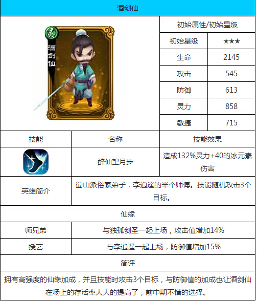 以上便是小编为大家带来新仙剑奇侠传中酒剑仙的属性图鉴解析。