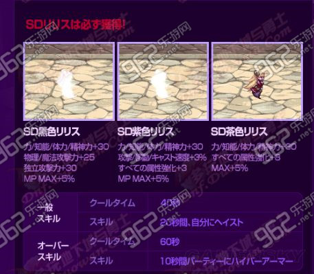 迷你莉斯可以看出三种颜色,属性也不相同!从左至右三种颜色分别为黑色、紫色、茶色!国服应该是紫色的,所以属性为4维+30,3速+3%,所有属强+3,MP最大值+5%。!宠物技能则是,一般技能CD40秒,技能效果20秒钟自身加速。超级技能CD60秒,技能效果全队霸体状态10秒。看来迷你莉斯的属性很不错哦,很值得做出来的!