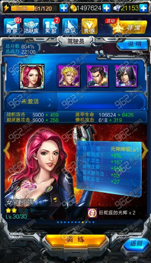 今天雷霆战机更新,新角色瓦帝刹和安吉丽娜上线,可能很多玩家对新角色属性不太了解,下面是安吉丽娜属性技能介绍分享。