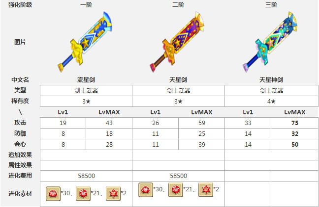 白猫计划中角色与武器都非常丰富,除了强大的4星以外3星武器也可一战!今天给大家介绍3星剑士武器‘流星剑’的详细属性以及进阶所需材料!