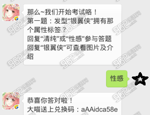 [乐游网导读]奇迹暖暖为玩家们开启了答题送套装的活动,其中第一题是发型银翼侠拥有哪个属性标志,下面就是小编为大家带来的正确答案分享,一起来看看详细的介绍吧!