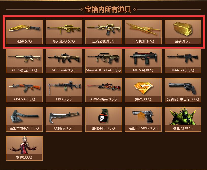 武器点评:24K金铸造的奢华外观,配上极其稀有的保有量,注定是战场上叱咤风云的武器。